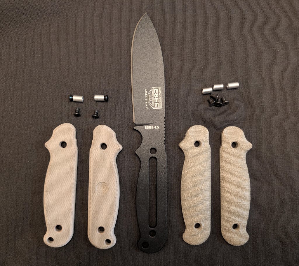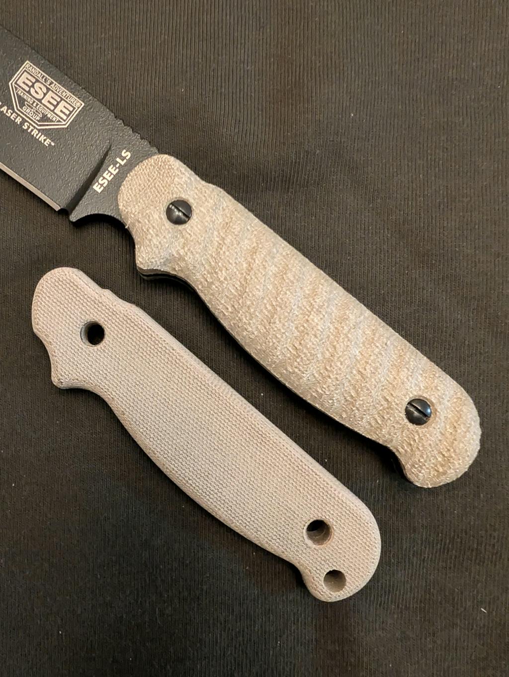My second set of Carroll's Custom Scales for Esee knives. Again, they are a great fit. The included hardware is much appreciated but the OE screws worked perfectly to secure them. The aesthetic improvement is second only to the increased utility these afford. The interior of the scales feature enlarged cavities allowing expanded storage. Intelligent contouring makes this very comfortable to hold and the texture/ribbing makes for excellent purchase.